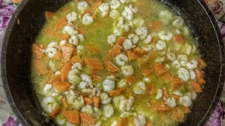 Metti in una ciotola 2 cucchiai d’olio, la soia, l’aceto di riso, il cardamomo, il coriandolo, lo zenzero, sale e combava. Mescola bene il tutto e unisci i gamberi precedentemente sgusciati, lavati e puliti. Tieni a marinare un’ora. Nel frattempo soffriggi il cipollotto tagliato ad anelli, unisci, quindi, le carote e fai cuocere il tutto per 10 minuti, unendo 1/2 bicchiere d’acqua. Salta i gamberi per 1′ in una padella a parte e poi unisci al composto di cipollotto e carote, bagna con la marinatura e fai cuocere per 2′. Servi caldo.