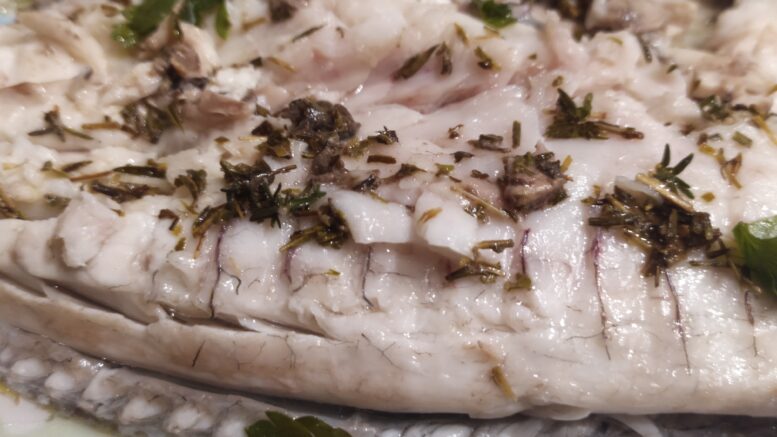 Accendete il forno a 180° nel frattempo pulite il pesce togliendo le interiora e lavandolo bene, quindi scolatelo dai liquidi (acqua ed eventuale sangue). Ponete il pesce in una teglia coperta da carta da forno, se volete, affiancato da verdure quali finocchio, cipolla, pomodoro, patate, zucchine, peperoni… Inserite nella parte cava dove erano le interiora sale, olio e santoreggia. Quindi inserite nel forno ben caldo e cuocete per 20 minuti circa, avendo cura di girarlo sull’altro lato di appoggio dopo 10 minuti. Servite caldo.
